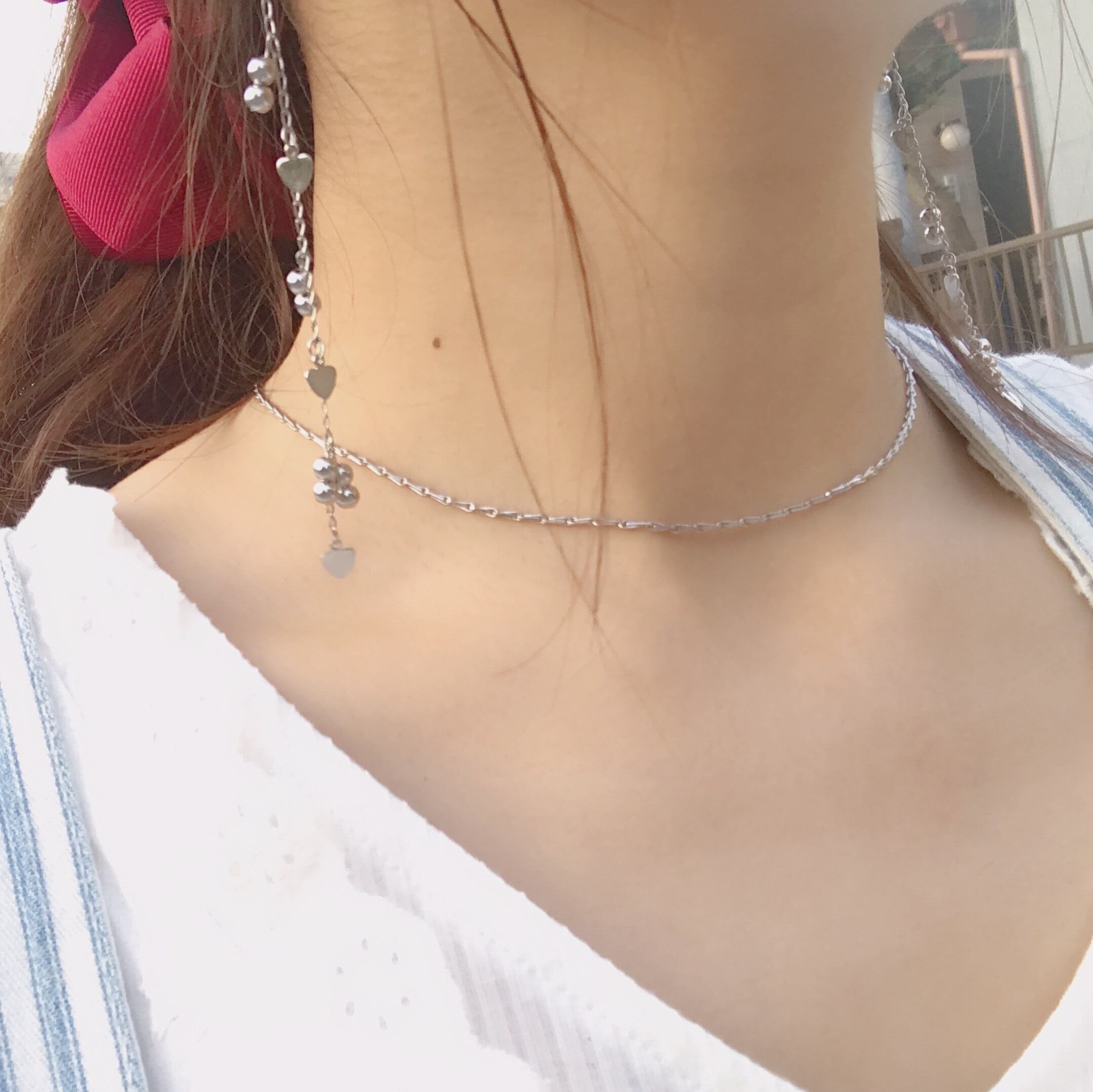 長さは短めのチョーカータイプですが、アジャスターがプラス5cmついているので調節できます☺︎
