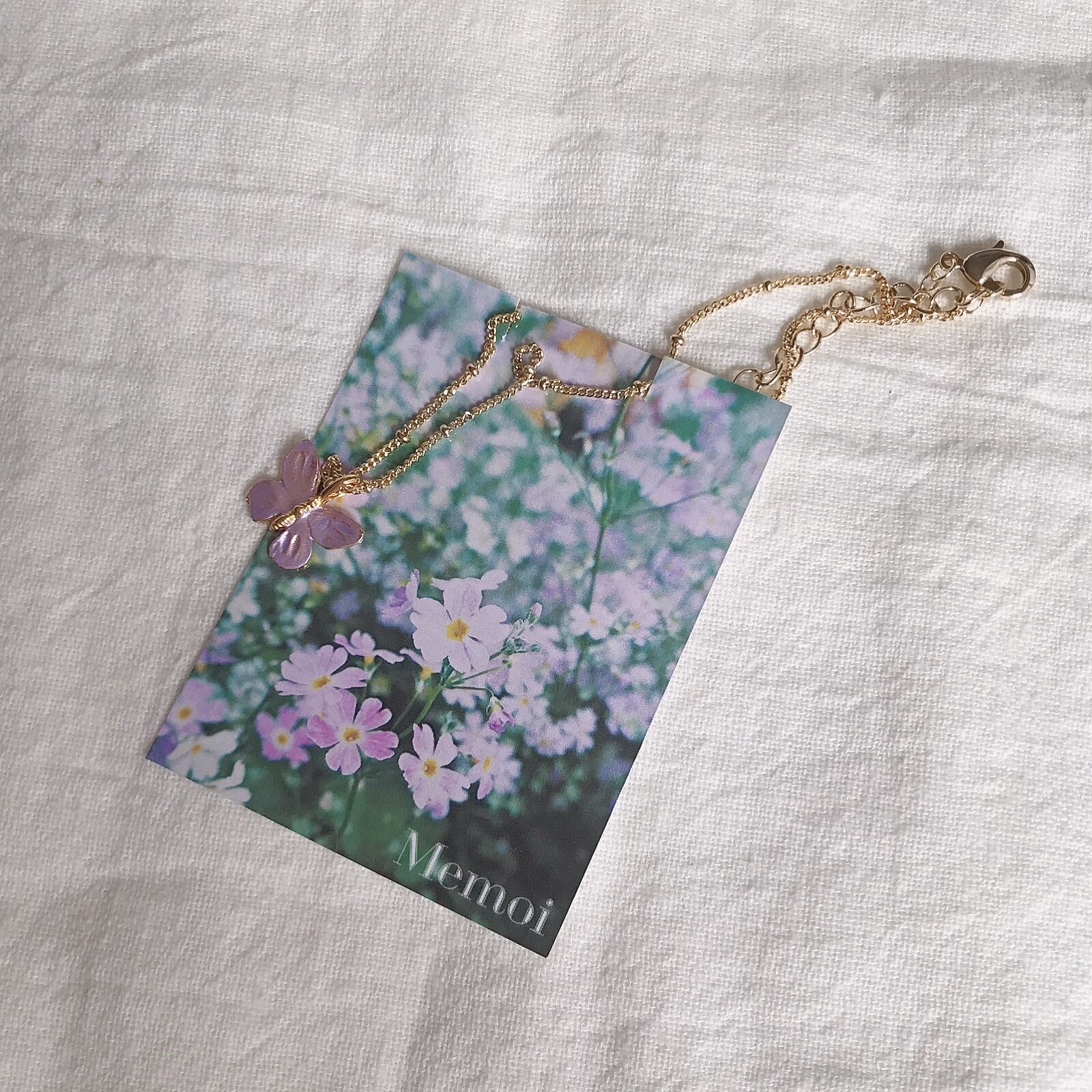 パープルとピンクの色味がきれいなパピヨンチャーム。