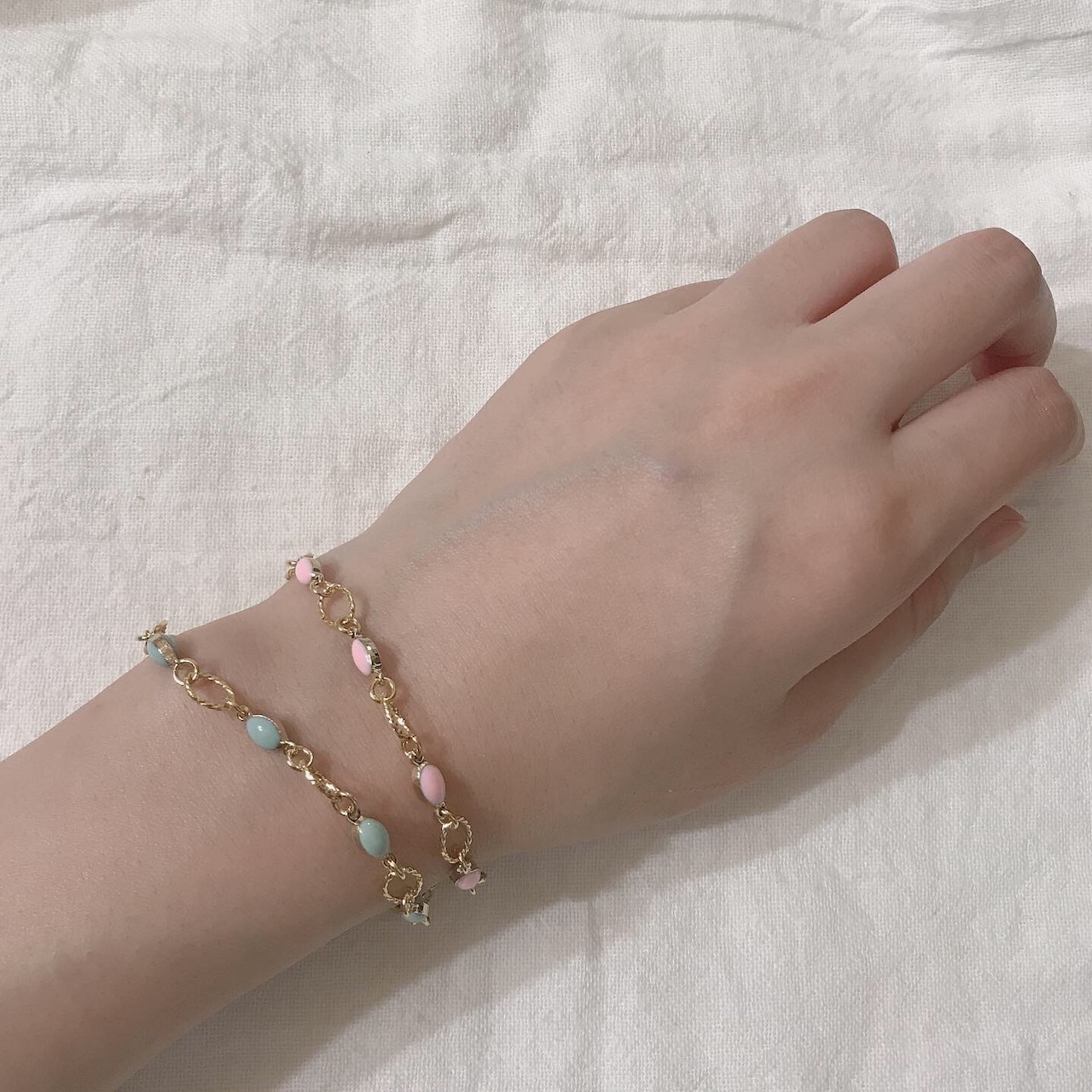 キャンディみたいなコロッとしたパーツが可愛いブレスレット。