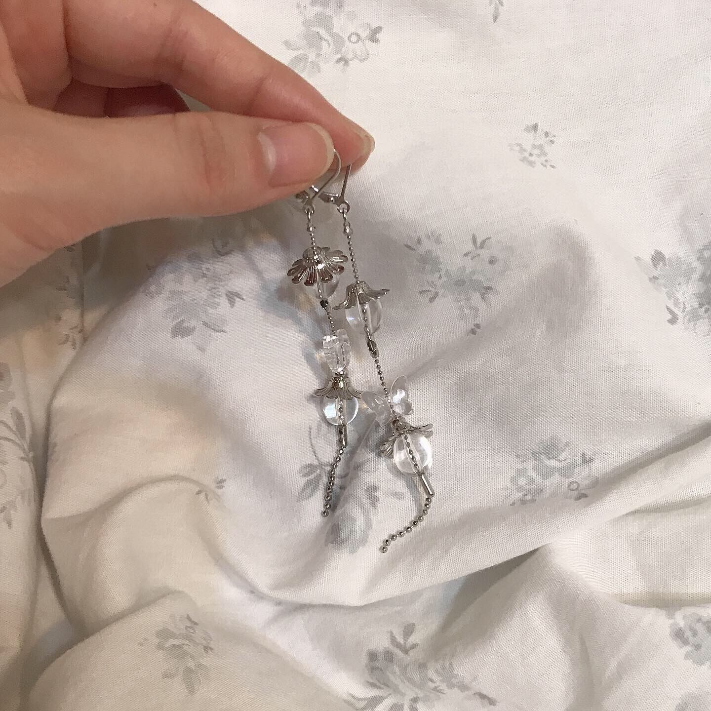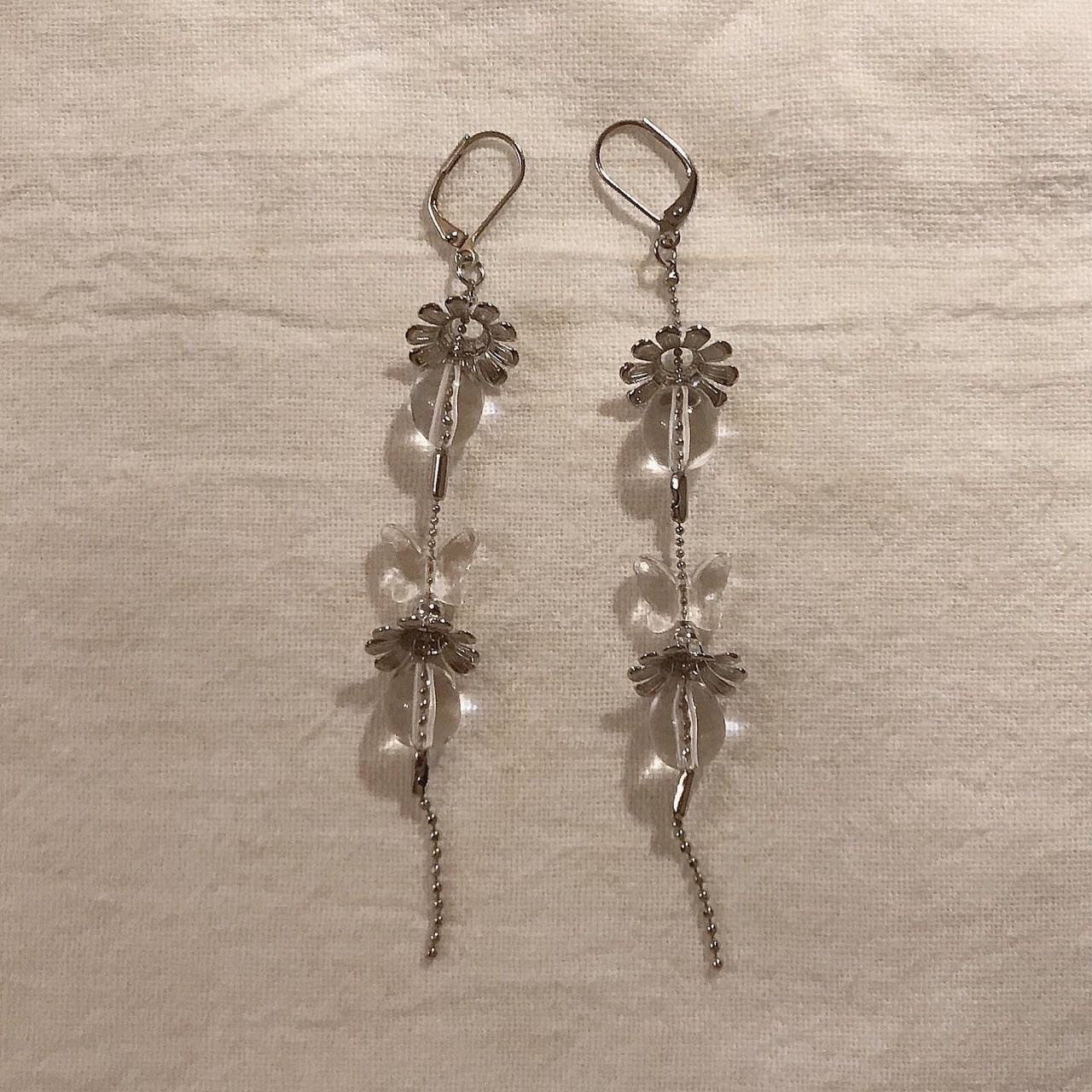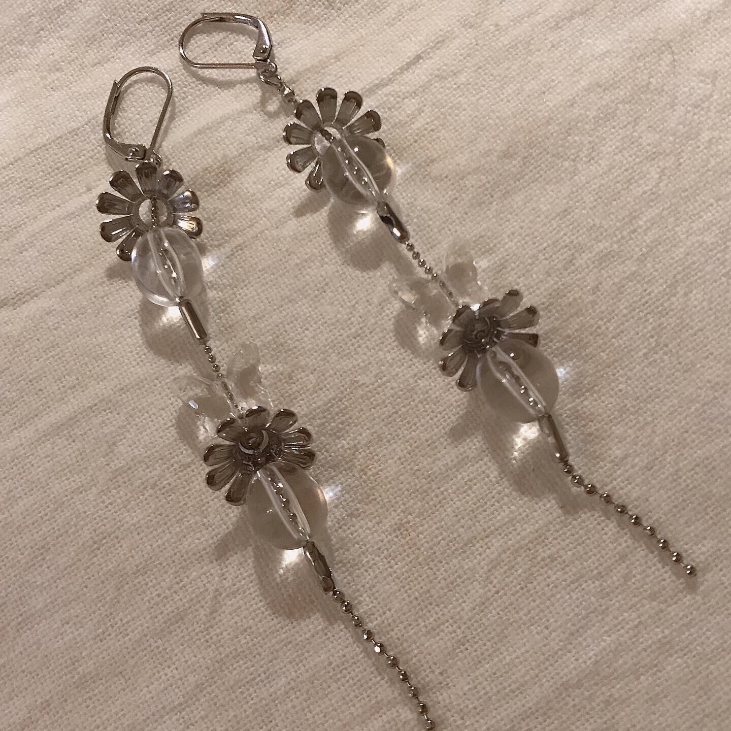 クリア × シルバーが綺麗なロングピアスです。