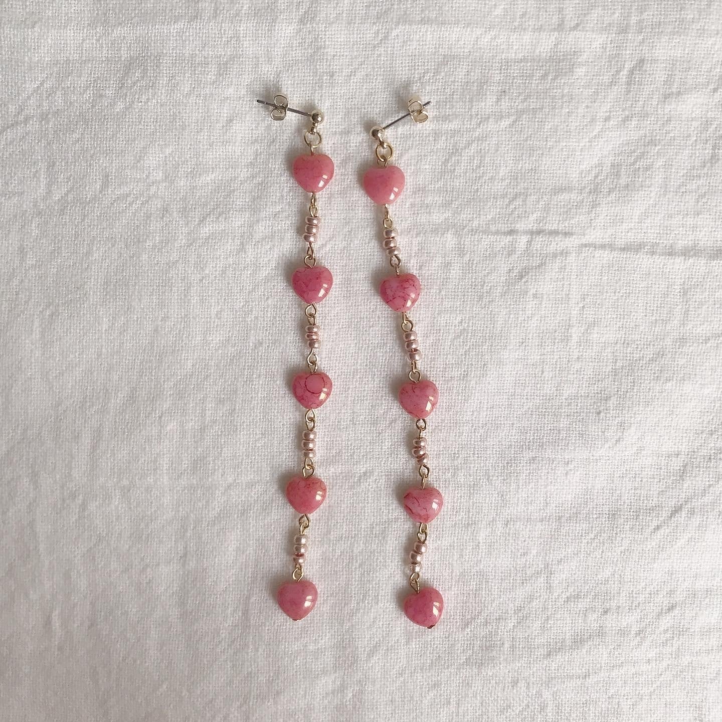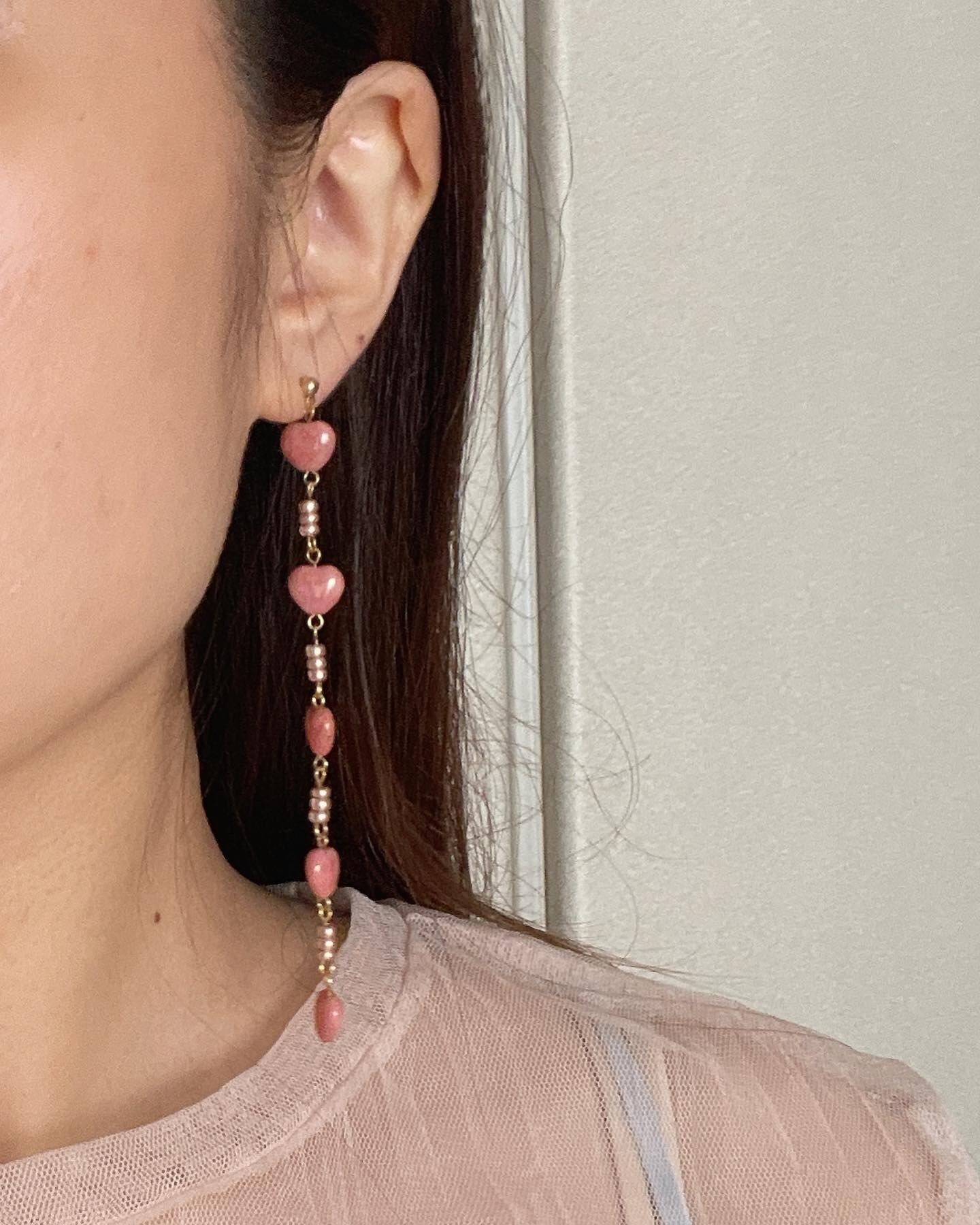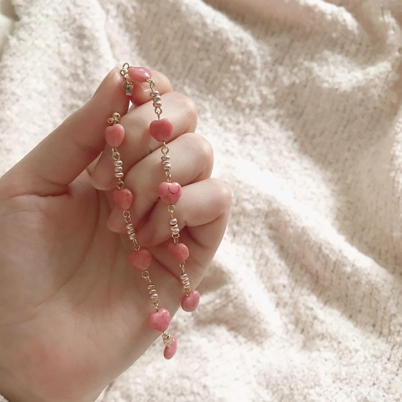 間に使用しているピンクゴールドのような色味のビーズが可愛くてお気に入りです♡