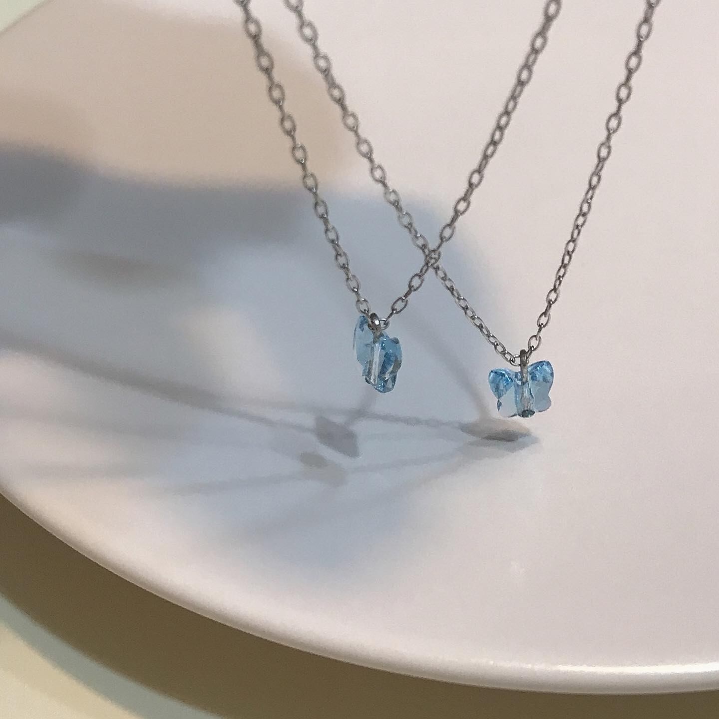 アクアマリンのパピヨンネックレス