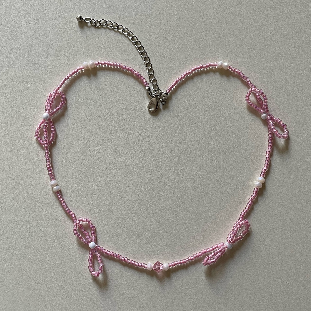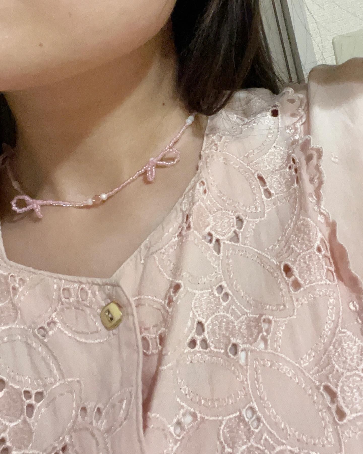 一粒一粒丁寧にビーズを繋げたハンドメイドネックレス。